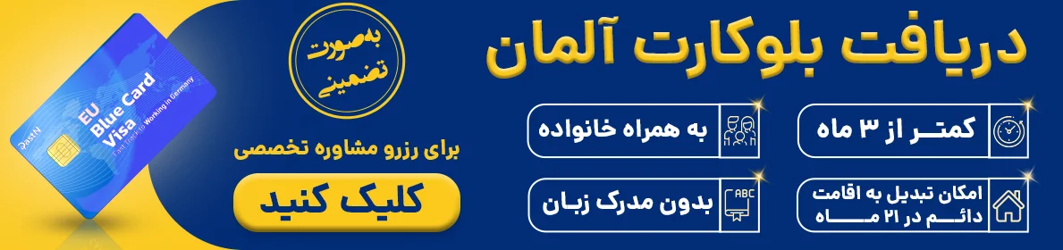 کارت آبی آلمان نوع خاصی از اجازه اقامت در این کشور است که هدف آن آسانتر کردن مهاجرت دائمی افراد واجد شرایط خارج از اتحادیه اروپا به آلمان است. این کارت پذیرش متخصصان بسیار ماهر اتباع خارجی را در اتحادیه اروپا تسهیل میکند. اگر شما هم قصد دارید از این طریق برای اقامت دائم آلمان درخواست دهید، برای اطلاع از شرایط دقیق و نحوه درخواست برای اخذ بلوکارت میتوانید با مشاوران و کارشناسان مجرب موسسه مهاجرتی اصطهباناتی در تماس باشید.